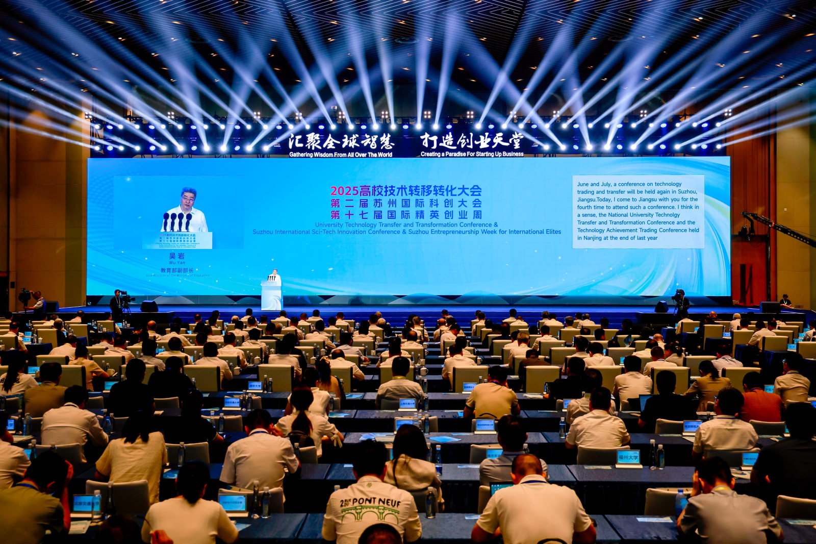 7月10日,2025高校技术转移转化大会暨第二届苏州国际科创大会、第十七届国际精英创业周在江苏苏州开幕。江苏省人民政府省长许昆林视频致辞,教育部副部长吴岩,省委副书记、苏州市委书记刘小涛出席并致辞。副省长李忠军主持开幕式。省教育厅厅长江涌、副厅长杨树兵出席会议。