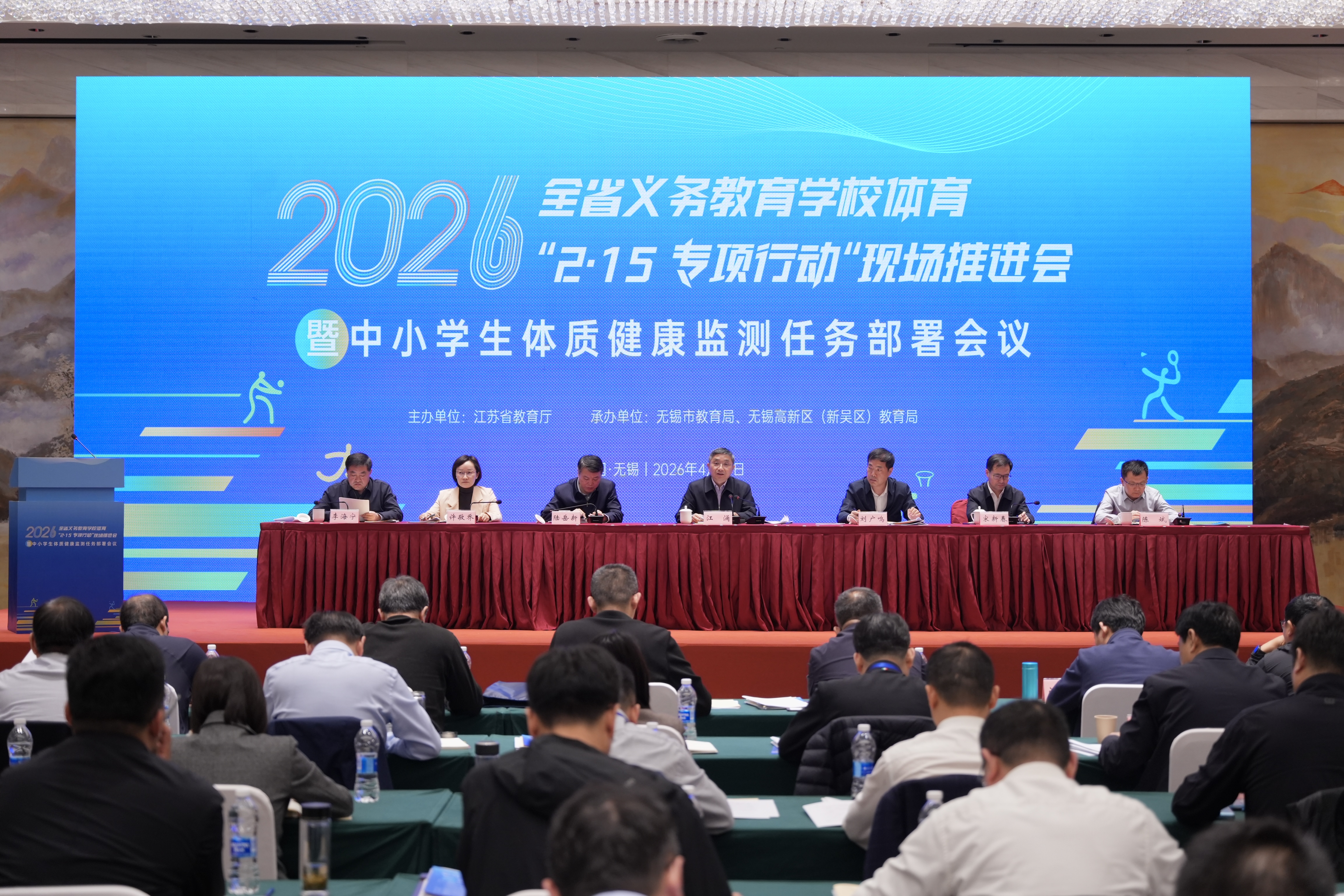 4月17日,省教育厅在无锡市召开义务教育学校体育“2・15专项行动”现场推进会暨中小学生体质健康监测任务部署会,深入学习贯彻习近平总书记关于“树立健康第一教育理念”的重大要求,认真落实教育部“新春第一会”和省委省政府工作部署,推进“2・15专项行动”提质增效,促进学生身心健康、全面发展。省教育厅厅长、省委教育工委书记江涌出席会议并讲话,省教育厅二级巡视员刘广鸣参加会议。